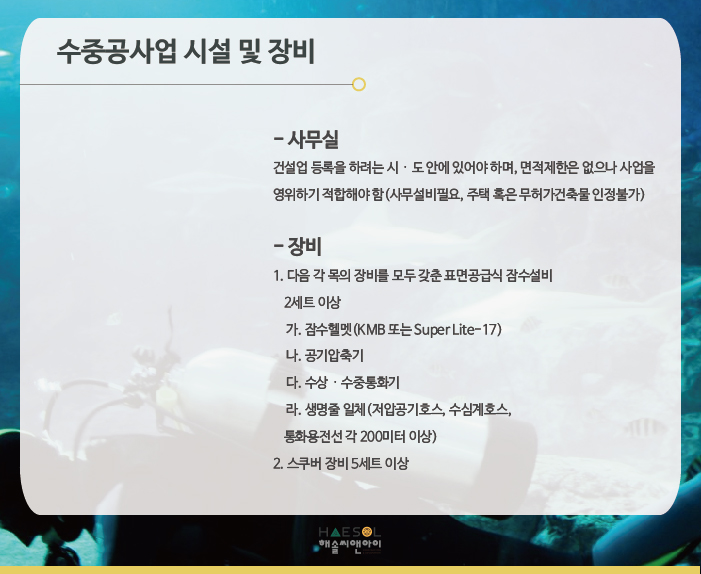 수중공사업은 총 2인 이상의 기술자격취득자를 준비하셔야만 합니다.