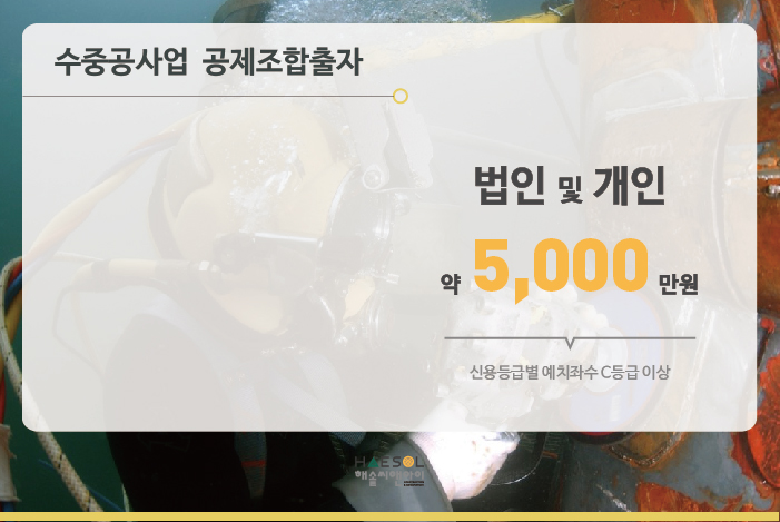 수중공사업은 전문건설공제조합에 약 5,000만원의 출자금을 예치하셔야 합니다.