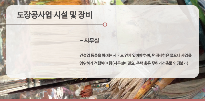 도장공사업은 특수장비 기준이 없으며, 사무실만 준비하시면 됩니다.