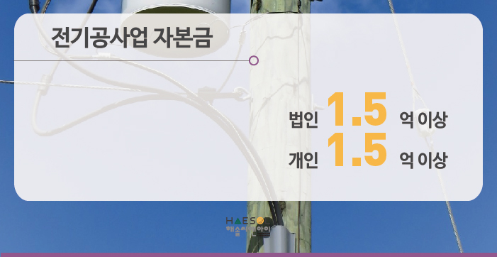 전기공사업은 법인과 개인사업자 모두 약 1.5억 이상의 자본금이 준비되어야만 합니다.