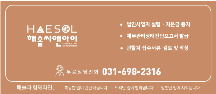 안녕하세요? 귀사를 위한 건설경영전문가 해솔씨앤아이입니다.