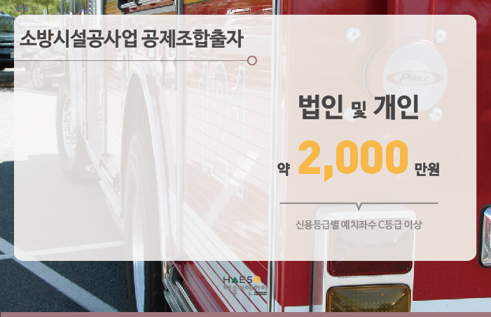 소방시설공사업은 법인과 개인사업자 모두 약 2,000만원의 출자금을 소방산업공제조합에 예치하셔야 합니다.
