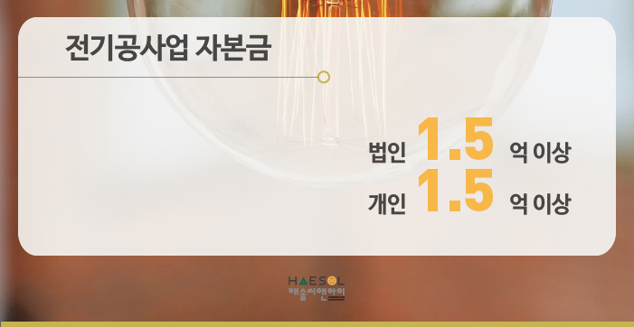전기공사업은 법인과 개인사업자 모두 1.5억 이상의 자본금을 준비하셔야 합니다.