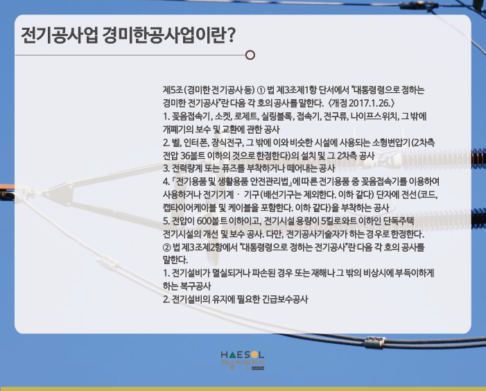 전기공사업이란? 전력, 전기, 신에너지 및 재생에너지 설비 등을 설치, 유지, 보수하는 공사를 진행하려면