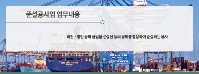 준설공사업은 하천, 항만 당의 물밑을 준설선 등의 장비를 활용하여 준설하는 공사를 말합니다.