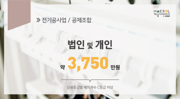 전기공사업 등록을 위한 자본금은 법인과 개인사업자 동일하게 1.5억원 이상이 충족되어야 합니다.