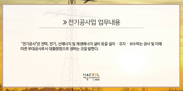 오늘은 전기공사업 면허 등록에 대한 내용을 함께 살펴보도록 하겠습니다.