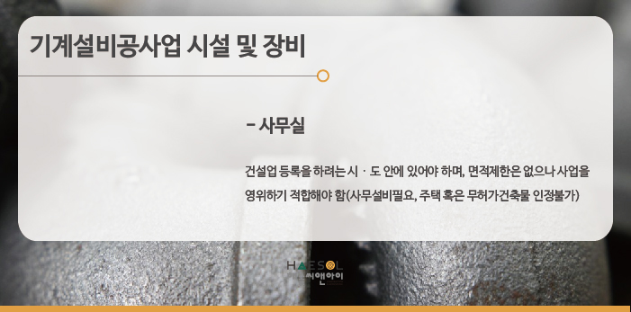 기계설비공사업은 특수장비 기준이 없으며, 사무실만 준비하시면 됩니다.