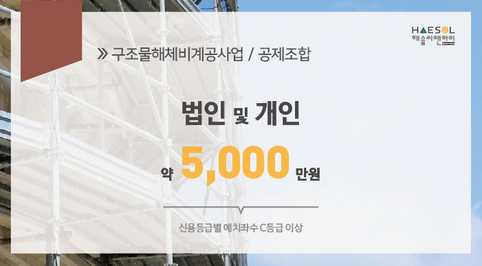 구조물해체비계공사업 법인이나 개인사업자 모두 약 5,000만원의 출자금을 예치하셔야 합니다.