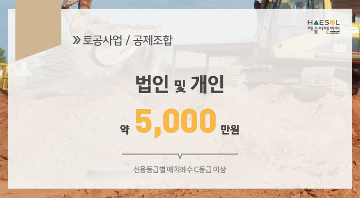 토공사업은 전문건설공제조합에 법인 및 개인사업자 모두 5,000만원의 출자금을 예치하셔야 합니다.