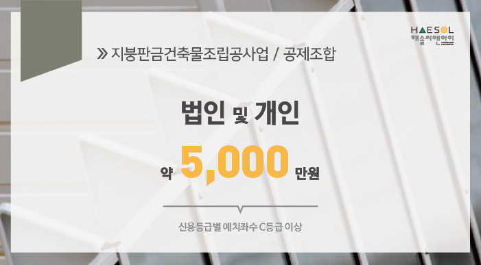 지붕판금건축물조립공사업 면허 등록을 위해서는 전문건설공제조합을 통해 약 5,000만원 가량을 예치하셔야 합니다.