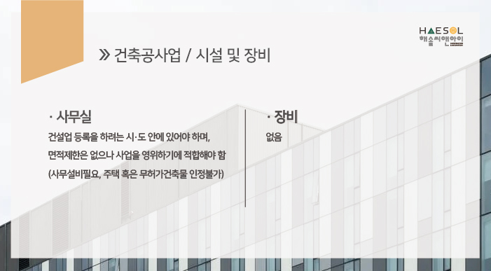 안녕하세요? 귀사를 위한 건설경영전문가 해솔씨앤아이입니다.