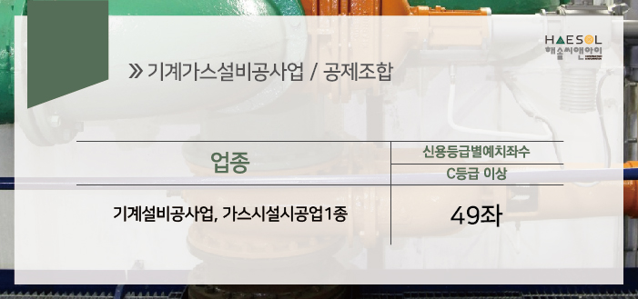 기계가스설비공사업은 법인과 개인사업자 모두 약 49좌에 맞는 출자금을 기계설비건설공제조합에 예치해야 합니다.