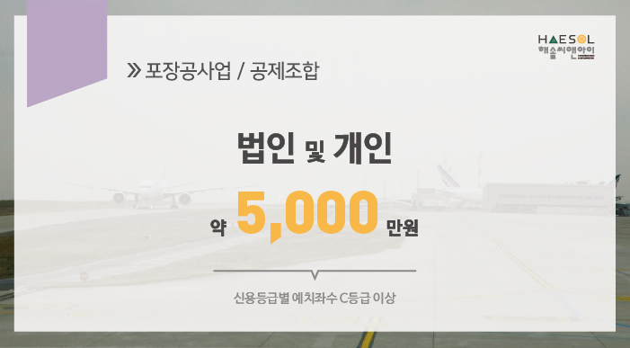 포장공사업은 법인이나 개인사업자 모두 약 5,000만원의 출자금을 전문건설공제조합에 예치하셔야 합니다.