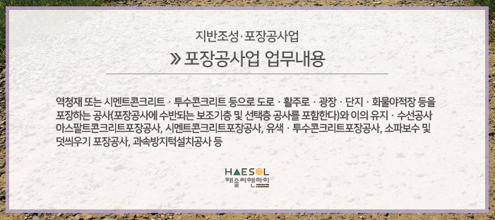 오늘은 지반조성포장공사업의 주력분야 중 하나인 포장공사업에 대해서 알아보겠습니다.