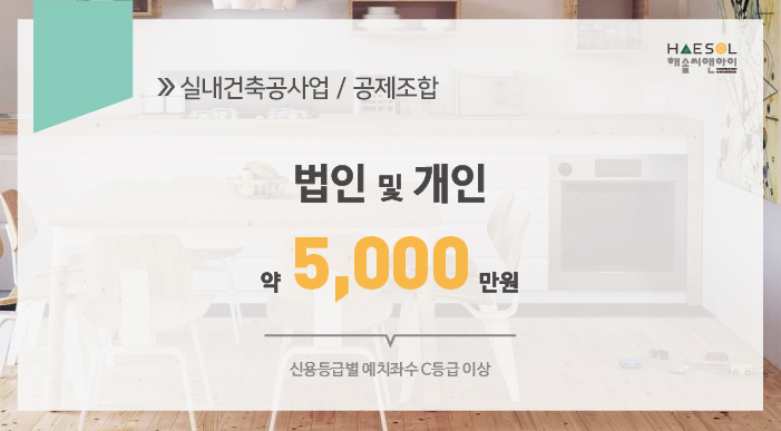 실내건축공사업은 법인과 개인사업자 모두 약 5,000만원의 출자금을 전문건설공제조합에 예치하셔야 합니다.