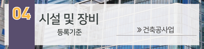 건축공사업의 경우 장비에 대한 필수 기준은 없으나 사무실이 기본으로 준비되어야 합니다.