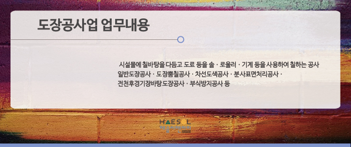 오늘은 전문건설면허 중 하나인 도장공사업에 대해서 안내드리려고 합니다.