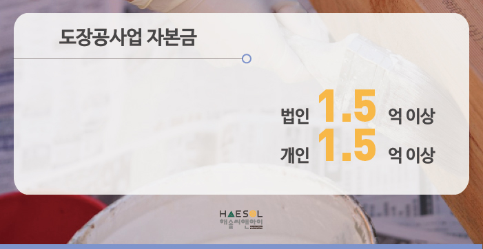 도장공사업은 법인과 개인사업자 모두 1.5억 이상의 자본금이 준비되어야 합니다.