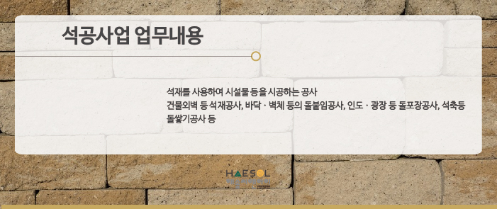 오늘은 전문건설면허 중 하나인 석공사업에 대해서 안내드리려고 합니다.