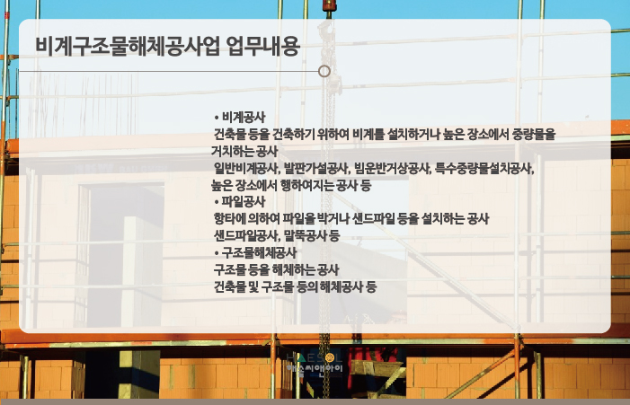 오늘은 전문건설면허 중 하나인 비계구조물해체공사업에 대해서 알아보도록 하겠습니다.
