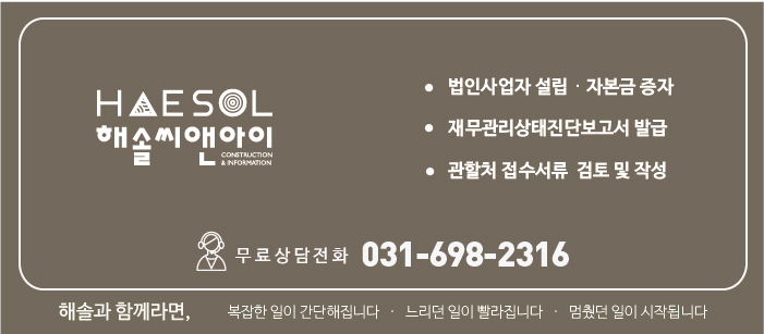논의 후 준비하셔야 헛된 시간과 비용을 절약하실 수 있으니 언제든지 궁금한 사항은 해솔씨앤아이로 문의바랍니다.