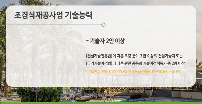 조경식재공사업은 총 2인 이상의 기술자격취득자를 준비하시면 됩니다.