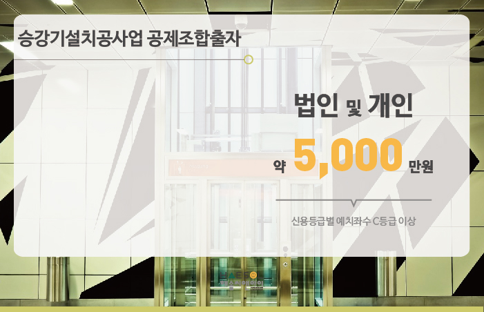 승강기설치공사업은 법인과 개인사업자 모두 약 5,000만원의 출자금을 전문건설공제조합에 예치하셔야 합니다.
