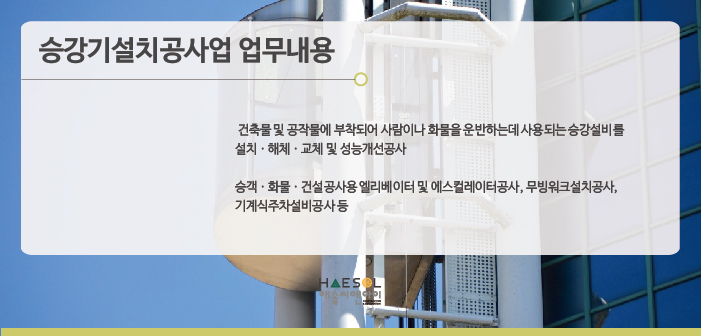 오늘은 승강기설치공사업 면허등록에 관련된 사항을 안내드리려고 합니다.