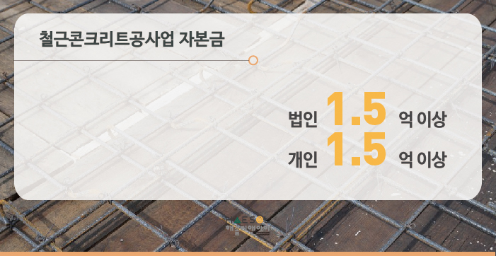 철근콘크리트공사업은 법인과 개인사업자 모두 1.5억 이상의 자본금을 충족하셔야 합니다.