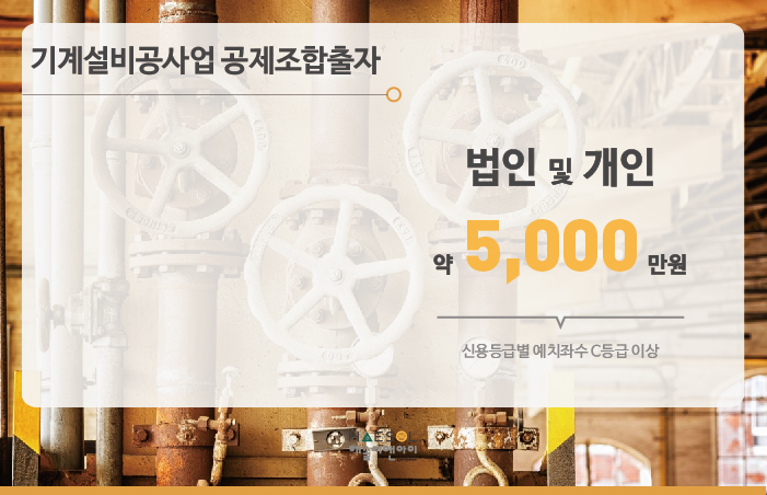 기계설비공사업은 법인이나 개인사업자 모두 약 5,000만원의 출자금을 기계설비공제조합에 예치하셔야 합니다.