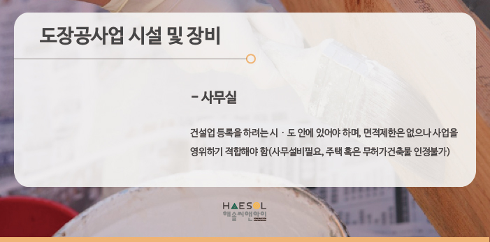 도장공사업은 특수장비 기준이 없으며, 사무실만 준비하시면 됩니다.