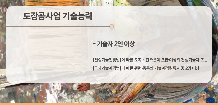 도장공사업은 총 2인 이상의 기술자격취득자를 준비하셔야만 합니다.