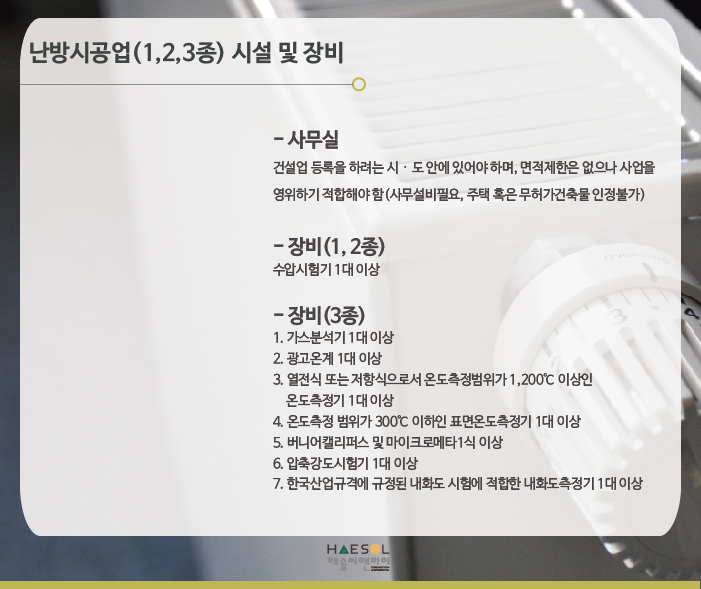 오늘은 전문건설면허 중 하나인 난방시공업면허 1, 2, 3종에 대해서 안내드리겠습니다.
