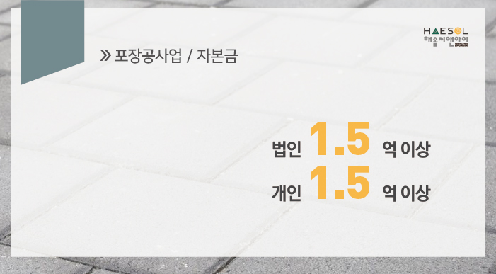 포장공사업은 법인이나 개인사업자 모두 1.5억 이상의 자본금을 모두 충족하셔야 합니다.