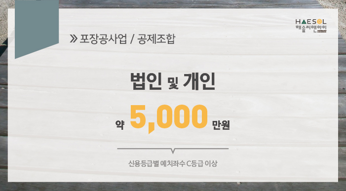 포장공사업은 법인이나 개인사업자 모두 약 5,000만원의 출자금을 전문건설공제조합에 예치하셔야 합니다.